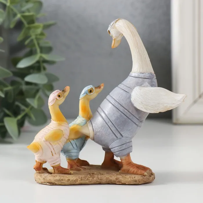 Фигурка полистоун «Гусыня с гусятами в плавательных костюмах», 11×6×11.5 см — Характеристики