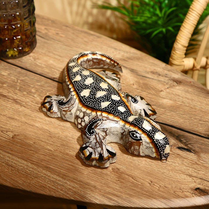 Скульптура игуаны станет характерным штрихом в кабинете, подчеркивая вкус и индивидуальность владельца. Она гармонично впишется в современный интерьер, добавив ему текстурности и природной эстетики. Для коллекционера рептилий или ценителя зооморфных фигурок это — узнаваемый и ценный экспонат. Её дарят как символ мудрости, выносливости и связи с природой, когда хотят пожелать устойчивости и процветания.