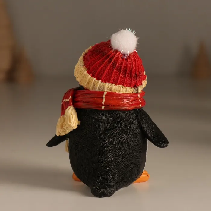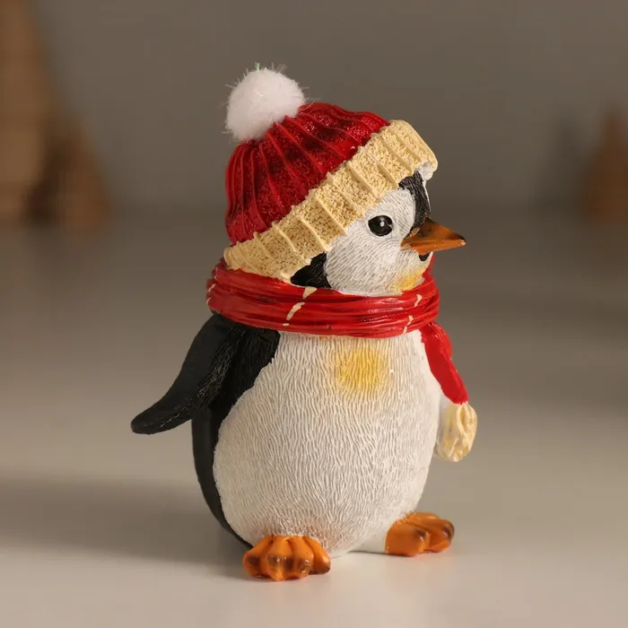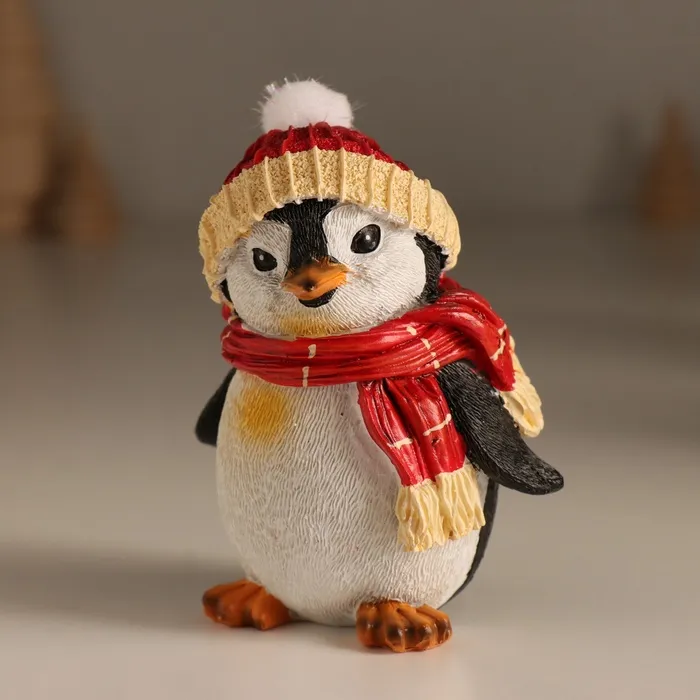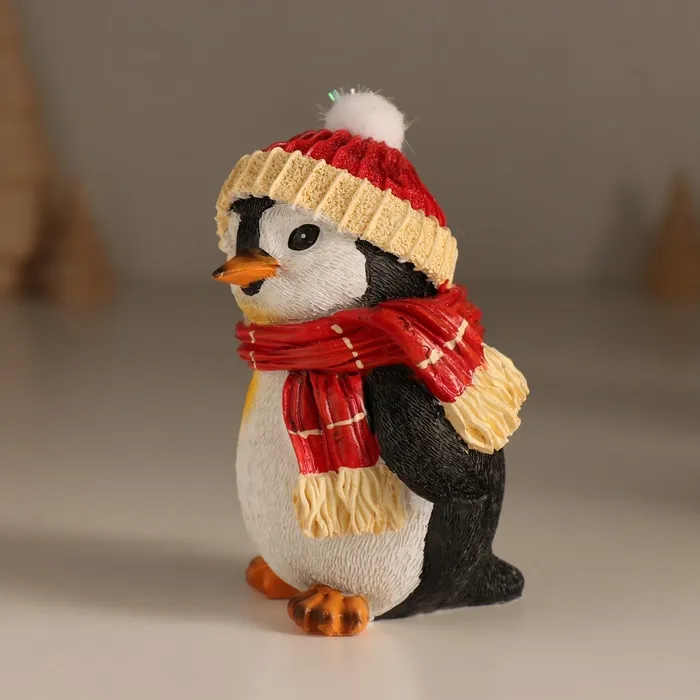 Фигурка полистоун «Хмурый пингвин в шапке с бомбошкой, в красном шарфе», 7.5×6×9.5 см — Характеристики