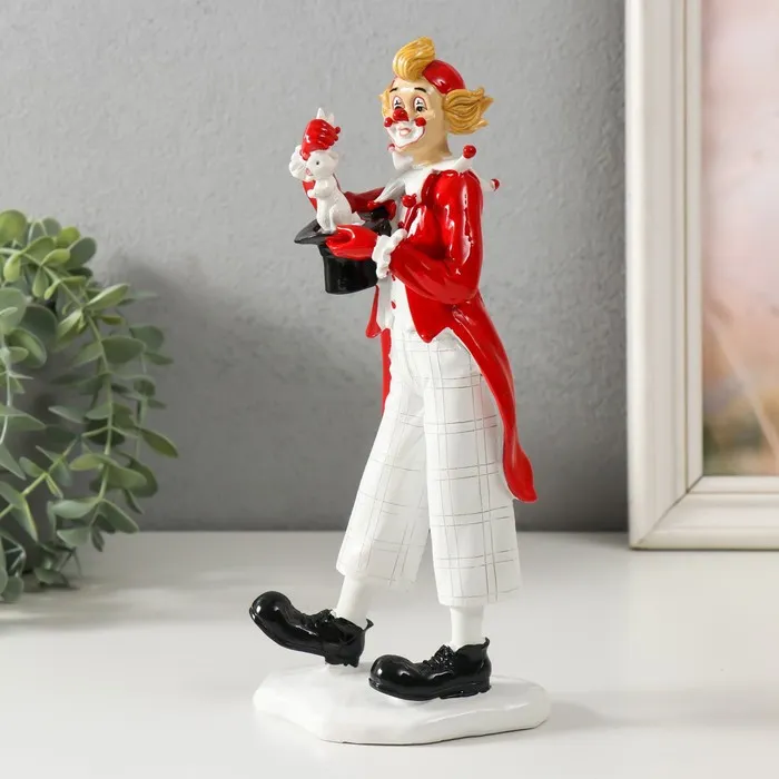 Фигурка полистоун «Клоун достает кролика из шляпы», бело-красный, 10.5×7.5×23.5 см — Характеристики