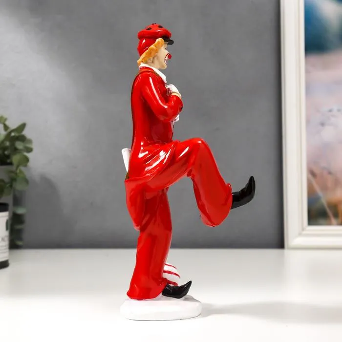Яркий персонаж цирковой арены теперь может поселиться в вашем доме или офисе. Эта выразительная фигурка высотой 25,5 см, выполненная из прочного полистоуна, изображает забавного клоуна с мячом и сумкой - готового в любой момент рассмешить и поднять настроение.