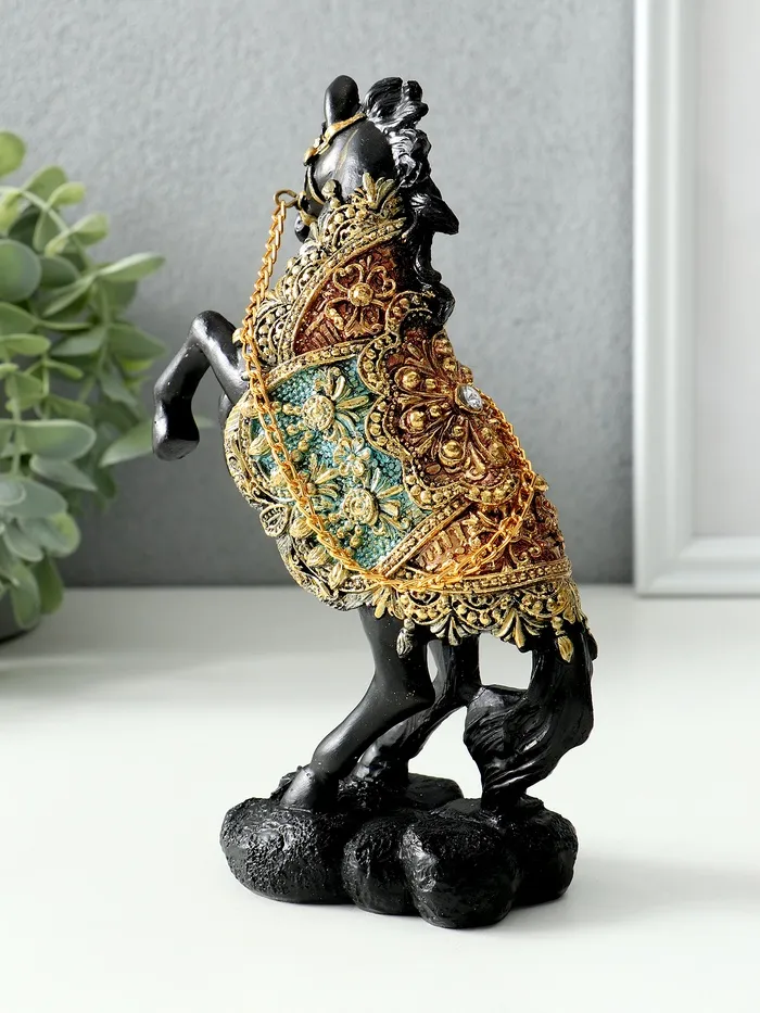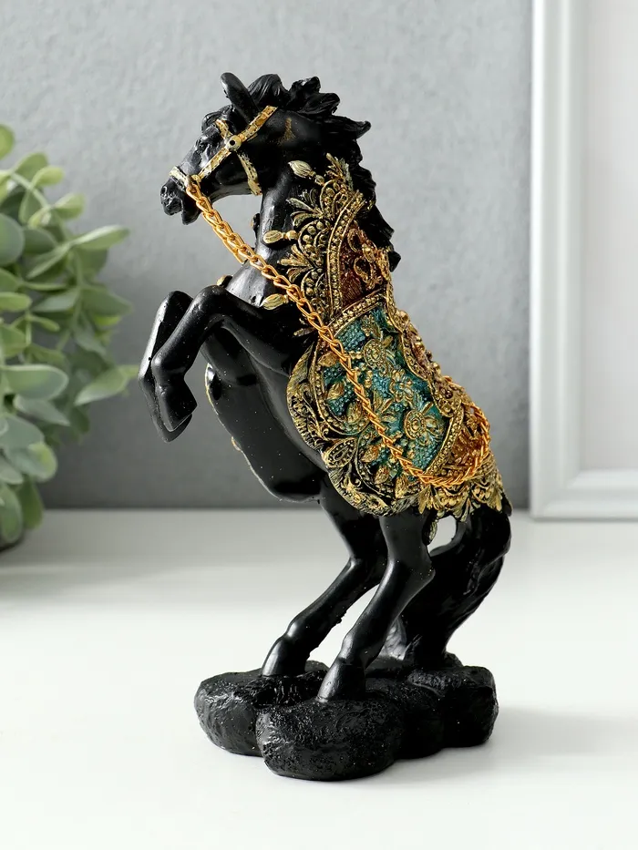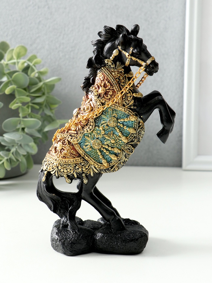 Фигурка полистоун «Конь императора на дыбах», чёрный, цветная попона, 11.5×7.2×19 см, МИКС — Характеристики