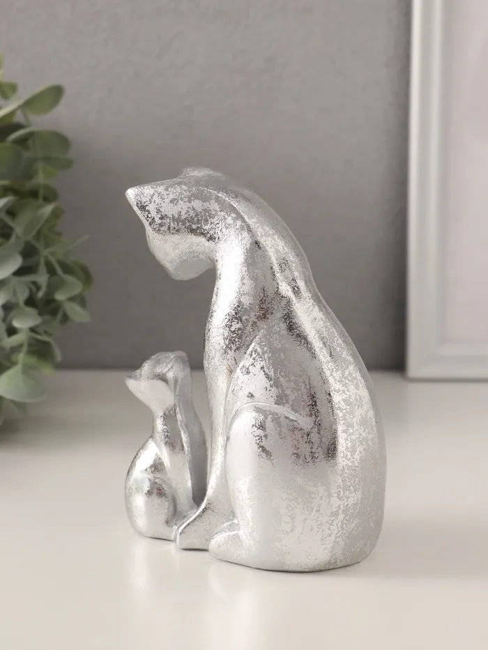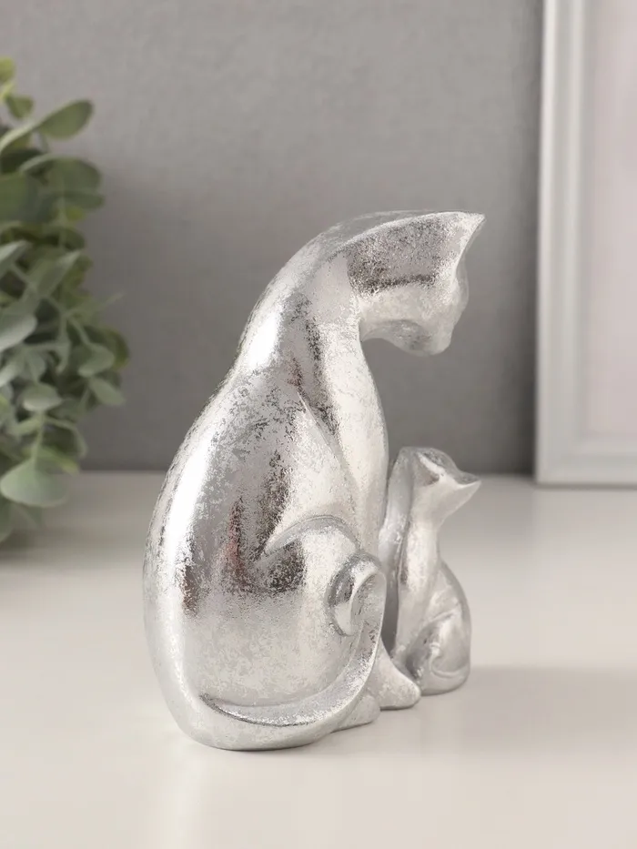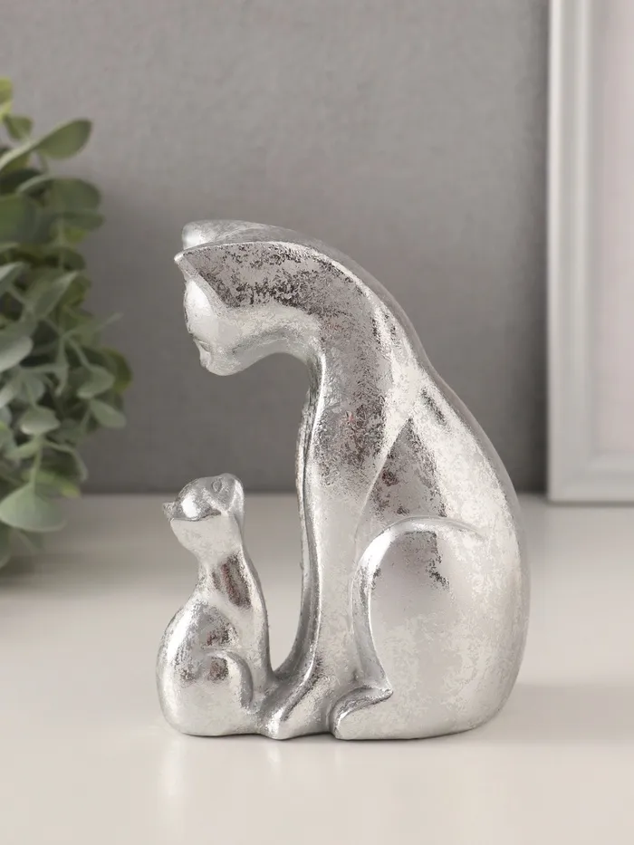 Позвольте себе насладиться теплом и нежностью, которые привнесёт в ваш интерьер эта изысканная фигурка. Кошка с котёнком, выполненная в серебристом оттенке, олицетворяет материнскую заботу и семейную гармонию. Этот аксессуар станет не только украшением вашего дома, но и символом любви и уюта.