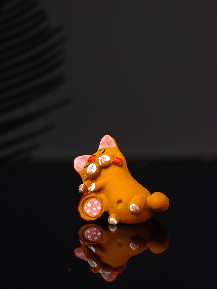 Миниатюрная фигурка из полистоуна, изображающая милого котика, мирно спящего на колбасе, станет изысканным украшением рабочего стола, полки или коллекции. Её скромные размеры — всего 4,2×3,7×3 см — позволяют легко вписать изделие в любой интерьер, придавая пространству уют и лёгкую игривость.