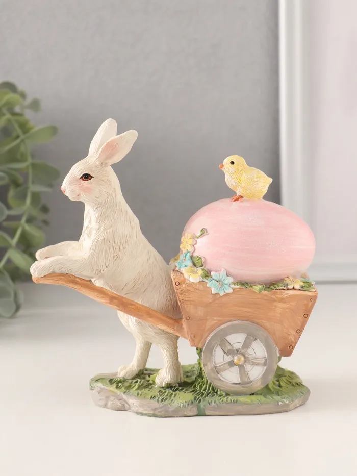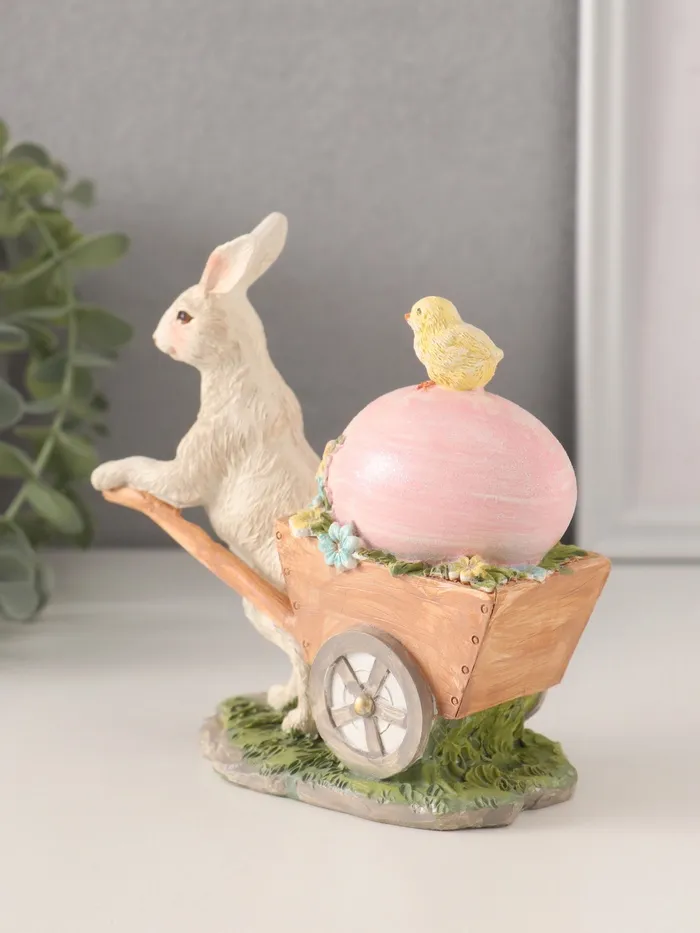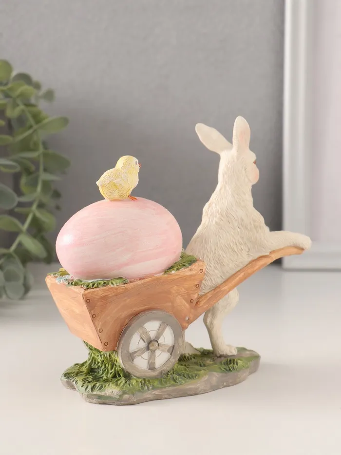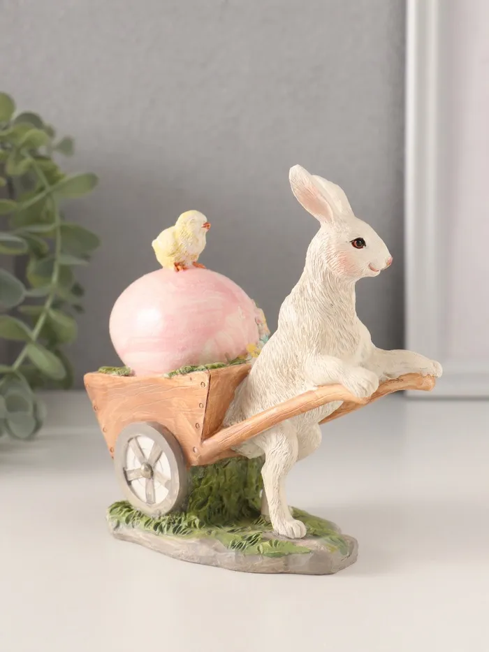 Фигурка полистоун «Кролик везёт тележку с цыплёнком и пасхальным яйцом», 13.5×6×13 см — Характеристики