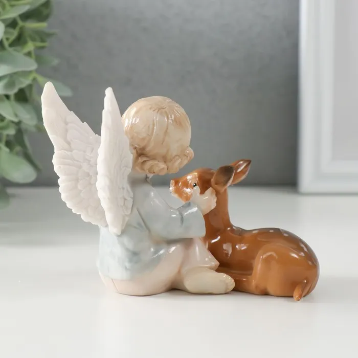 Фигурка полистоун «Кучерявый ангел с оленёнком», 9.5×9.5×10.5 см — Характеристики