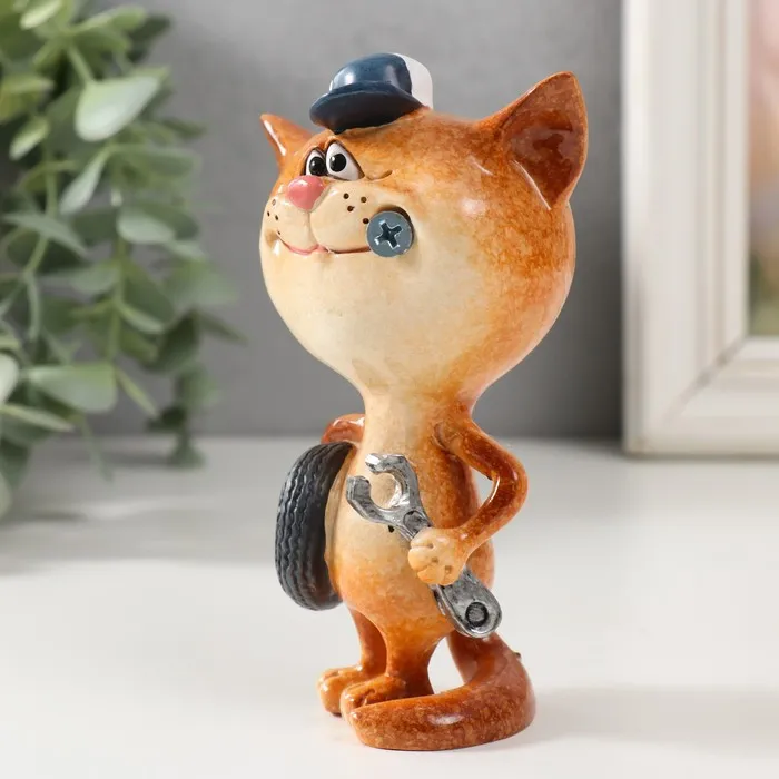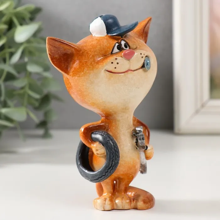 Фигурка полистоун лак «Котик шиномонтажник», 8×5.8×12.8 см — Характеристики