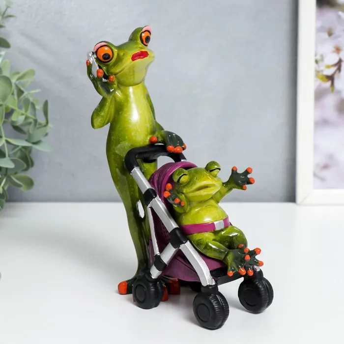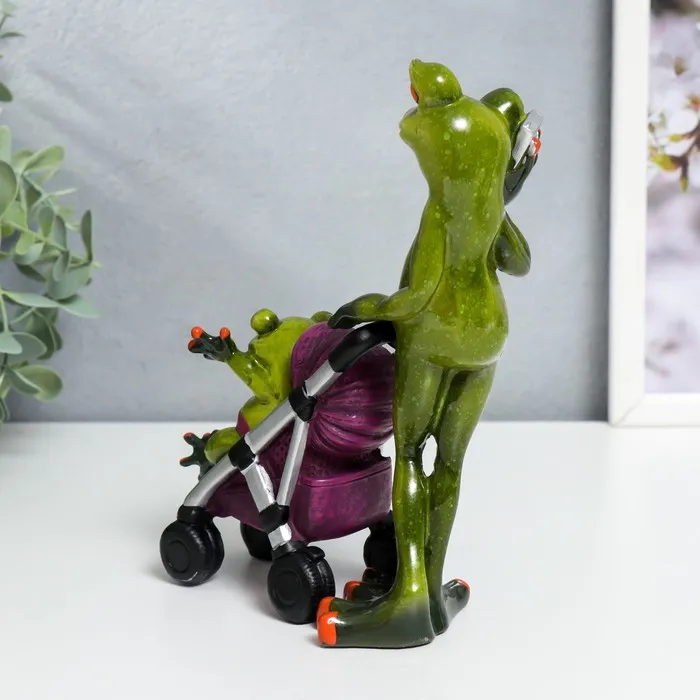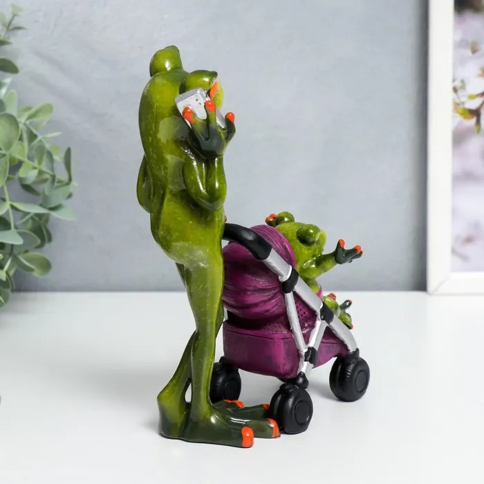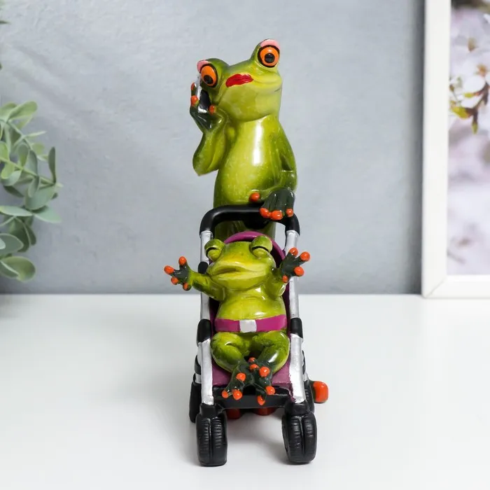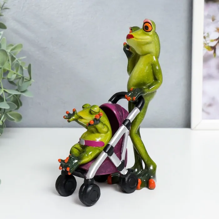 Фигурка полистоун лак «Лягуха: Мамочка с малышом в коляске», 16.7×6.3×15.5 см, МИКС — Характеристики