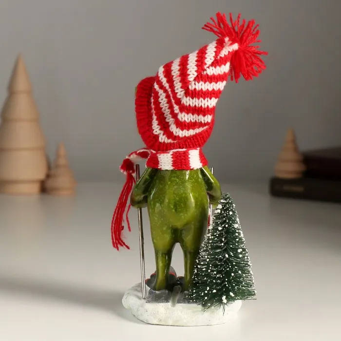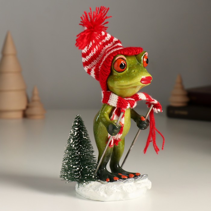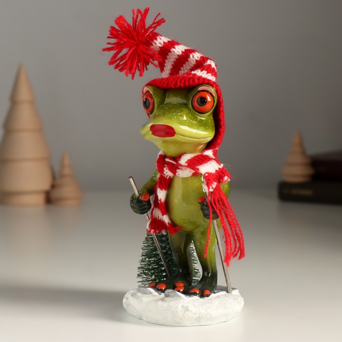 Фигурка полистоун лак «Лягуха в шапочке и шарфике на лыжах», 8.5×7×14 см — Характеристики