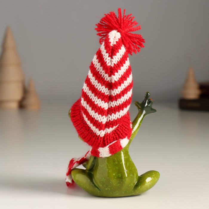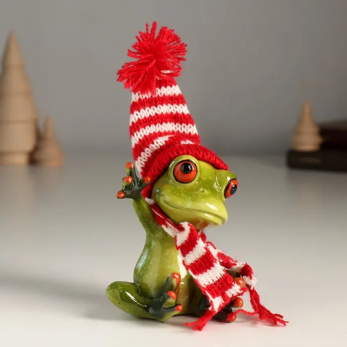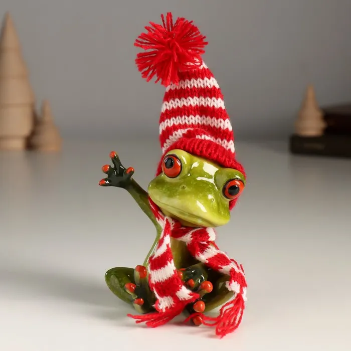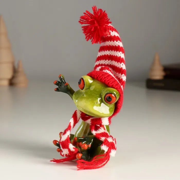 Фигурка полистоун лак «Лягуха в шапочке и шарфике приветствует», 7.7×6.3×13 см — Характеристики