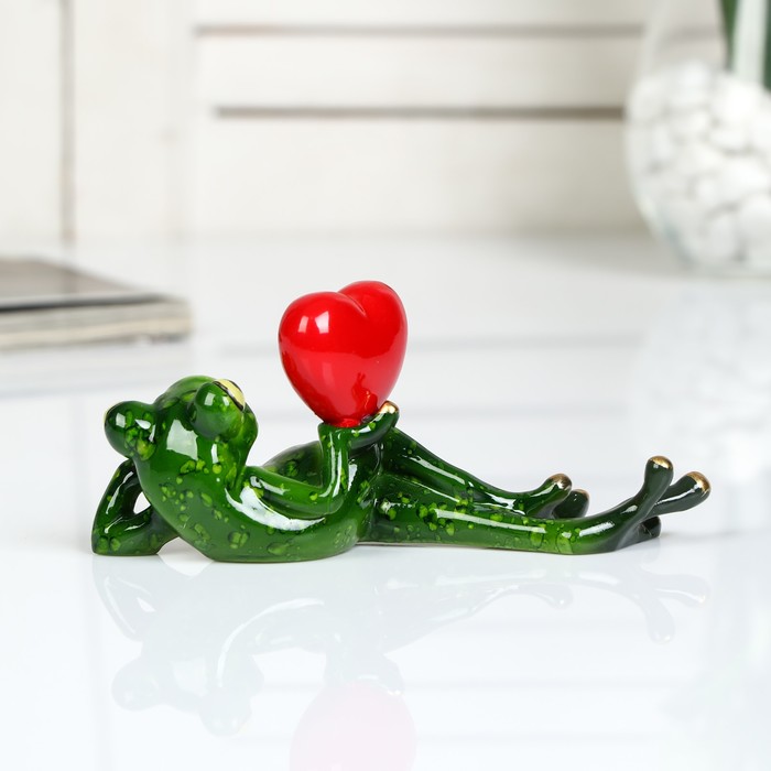 Фигурка полистоун лак «Лягушонок лежит с сердцем в руке», 6×5×15 см — Характеристики