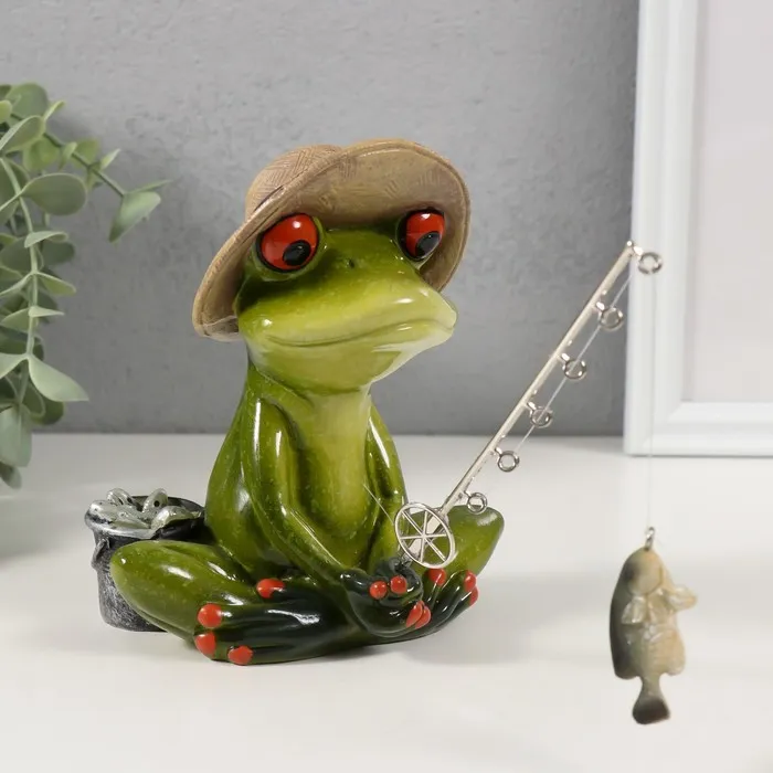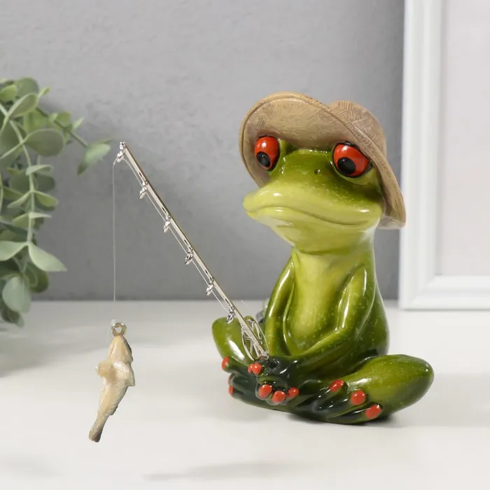 Фигурка полистоун лак «Лягушонок-рыбачок», 15.5×11.8×13.8 см — Характеристики