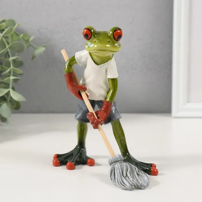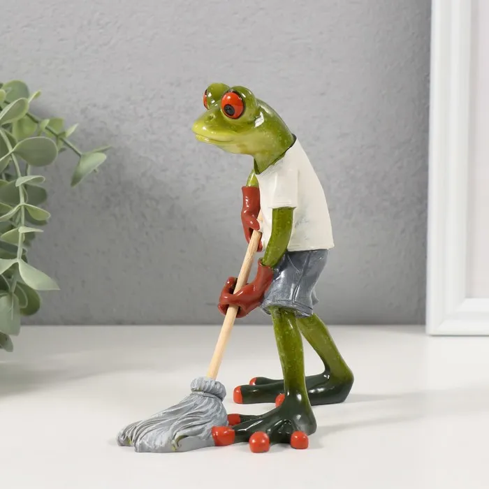 Фигурка полистоун лак «Лягушонок с шваброй», 13×7.5×14 см — Характеристики