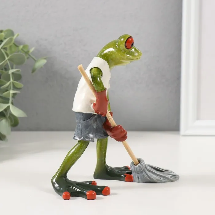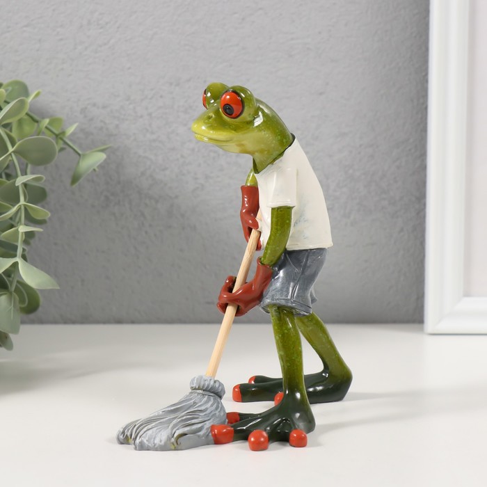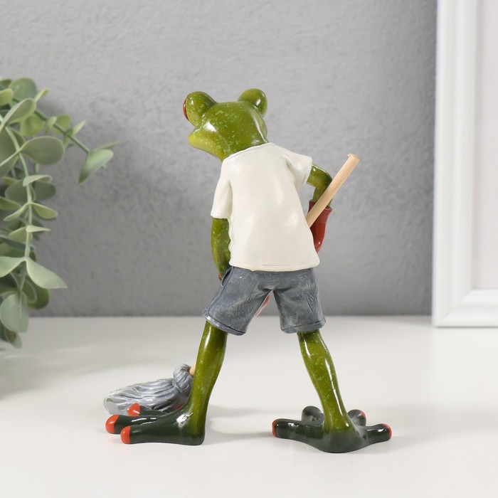 Фигурка полистоун лак «Лягушонок с шваброй», 13×7.5×14 см