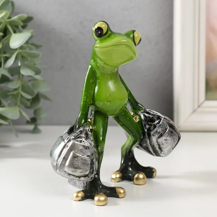 Фигурка полистоун лак «Лягушонок с сумками», 7.5×11.5×13 см — Характеристики