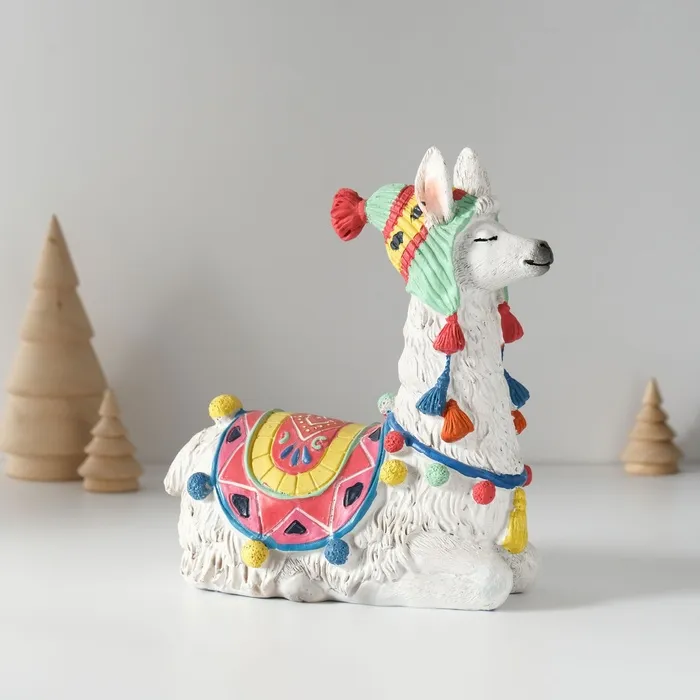 Фигурка полистоун «Лама в цветной попоне и шапке с помпонами», 15×8.5×16.5 см — Характеристики