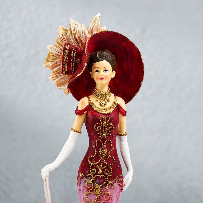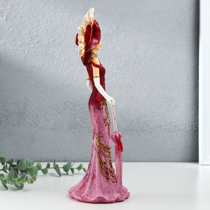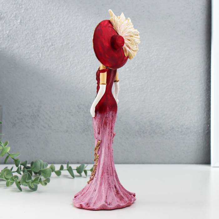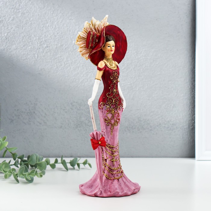 Эта фигурка леди в розовом платье, с шляпой и зонтом, станет изысканным украшением интерьера или элегантным подарком для близких. Изготовленная из прочного полистоуна, она сочетает в себе высокое качество и художественную выразительность. Розовые и красные оттенки придают композиции яркость и утончённость, а детализированная проработка фигуры подчеркивает мастерство исполнения.