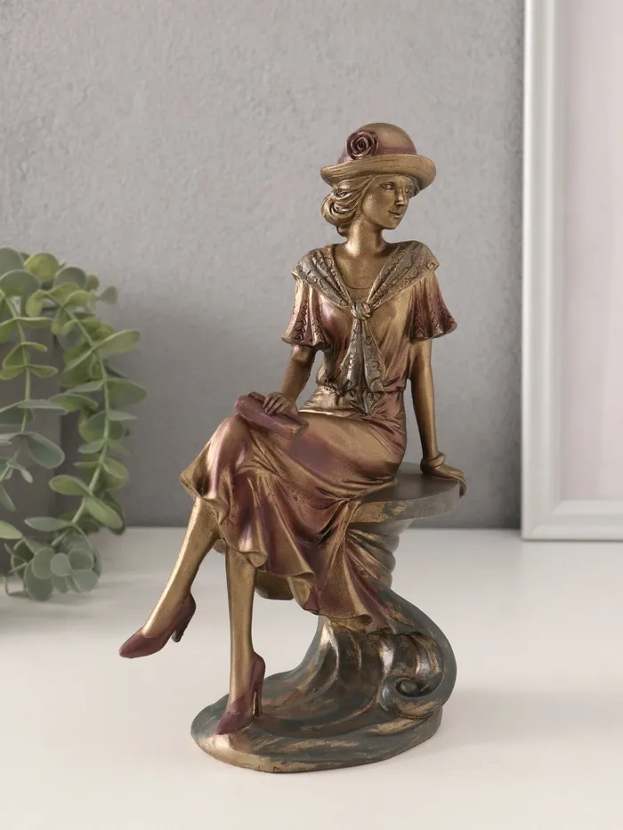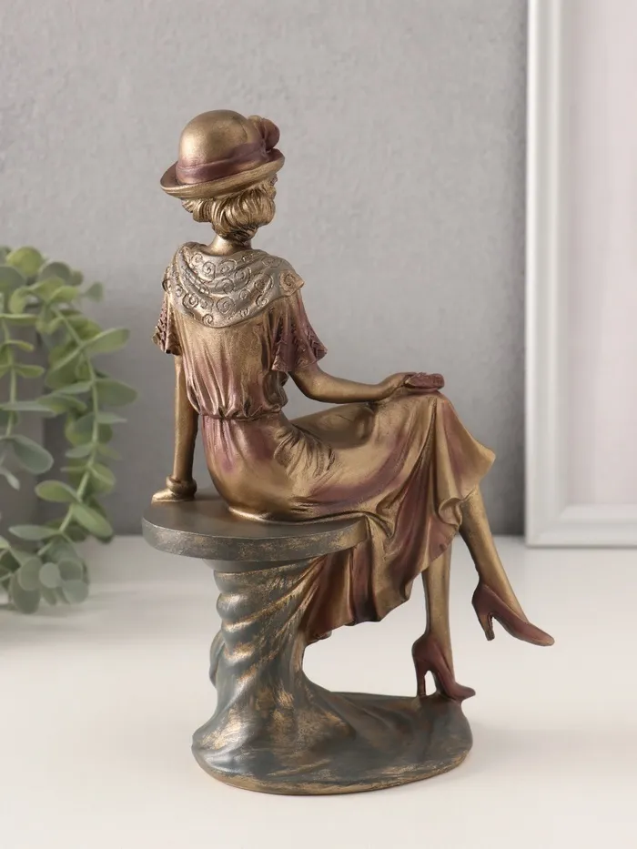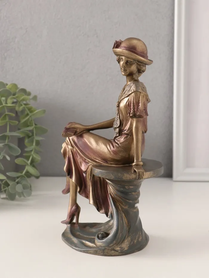 Фигурка полистоун «Леди в шляпке-котелке с цветком», бронзо-фиолетовый, 13×8×21.5 см — Характеристики
