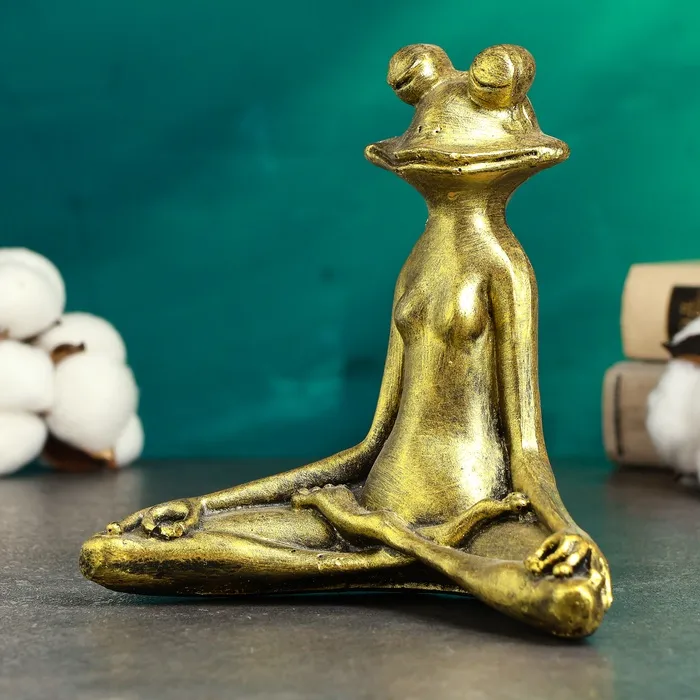Фигурка полистоун «Лягушка йог в позе лотоса», 16×16×6 см, под золото — Характеристики