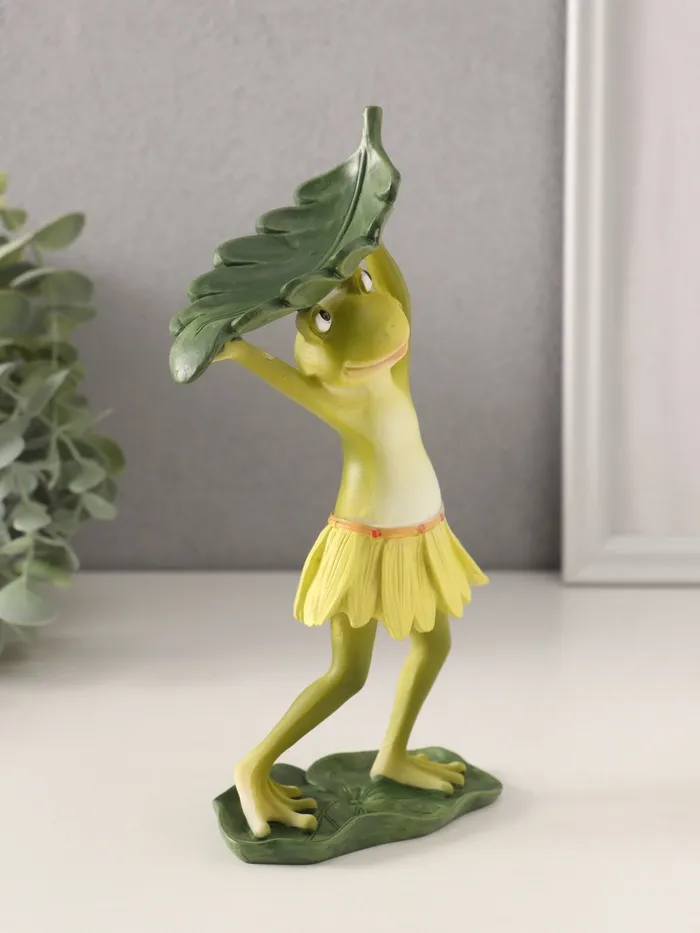 Эта фигурка станет ярким акцентом в вашем интерьере или необычным подарком для ценителей оригинальных деталей. Изображение лягушонка в набедренной повязке из листьев передаёт атмосферу природной гармонии и лёгкости. Зелёный цвет и тщательная проработка деталей делают фигурку выразительной и запоминающейся. Изготовленная из полистоуна, она отличается прочностью и устойчивостью к внешним воздействиям.