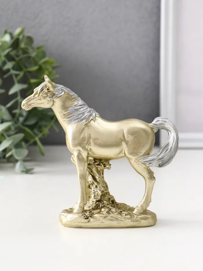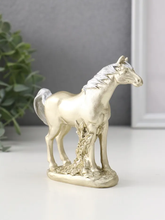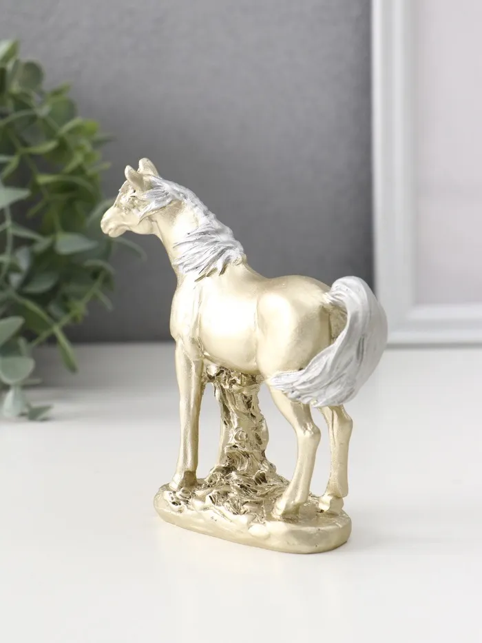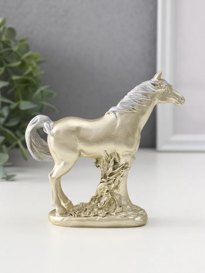 Фигурка полистоун «Лошадь золотистая с серебристой гривой», 12.5×3.5×11.5 см — Характеристики