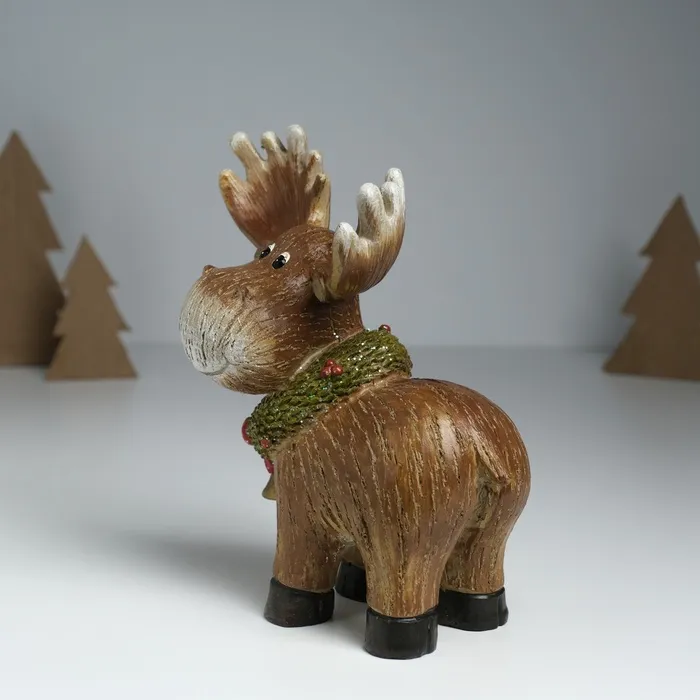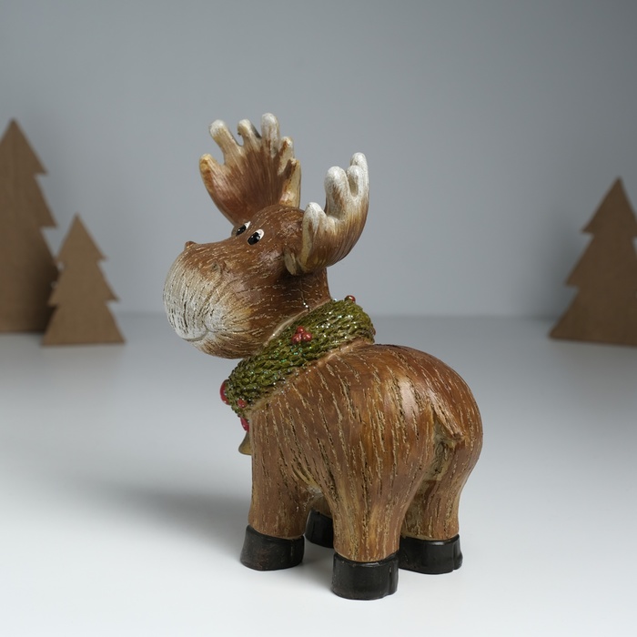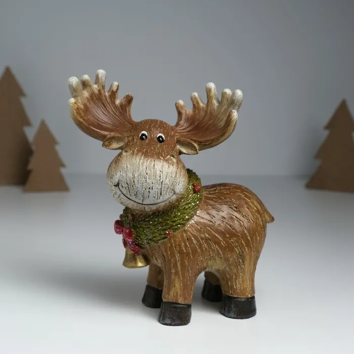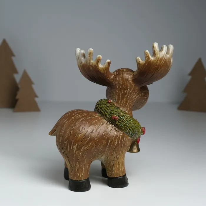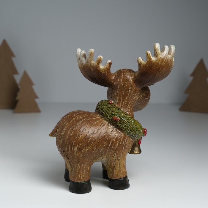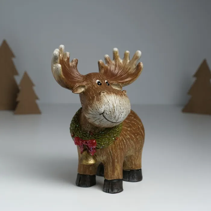 Фигурка полистоун «Лосик Улыбка в еловом венке с ягодками и колокольчиком», 15.5×9×17.5 см — Характеристики