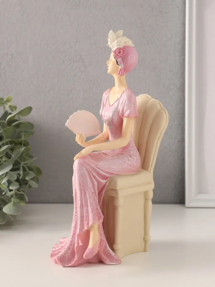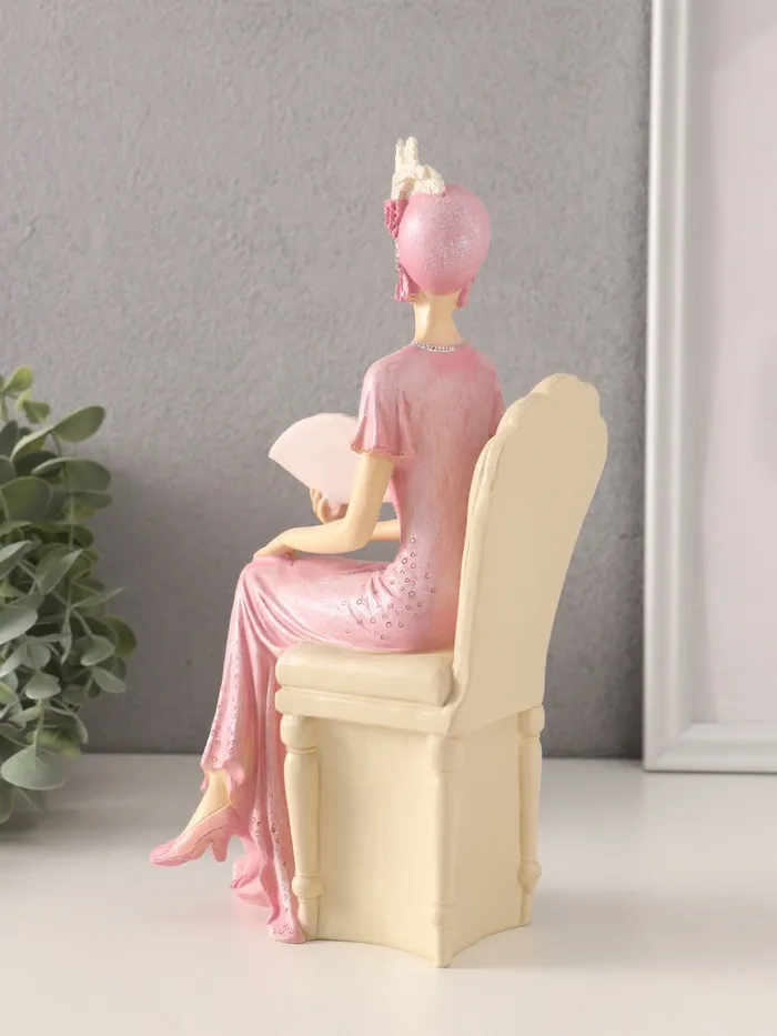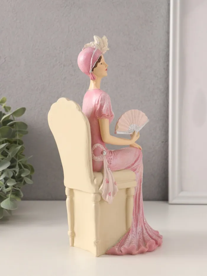 Фигурка полистоун «Мадмуазель Элиза в розовом платье с веером, в кресле», 13×9×25 см — Характеристики