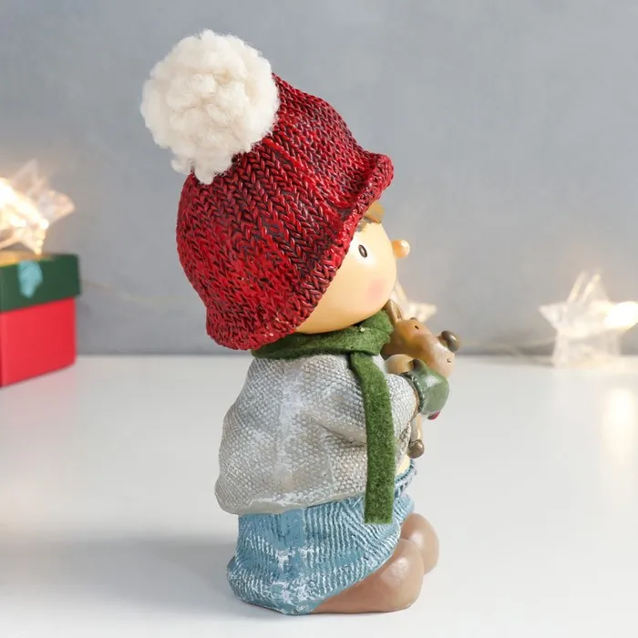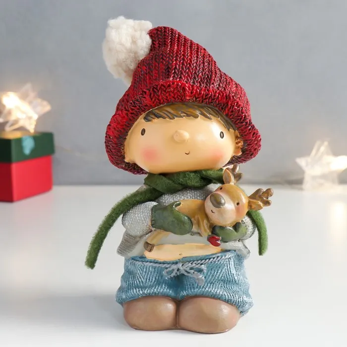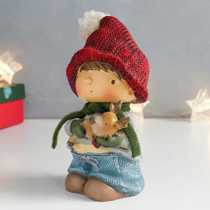 Фигурка полистоун «Мальчик в красной шапочке с оленёнком на руках», 10×8.5×16 см — Характеристики