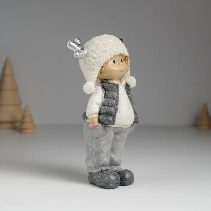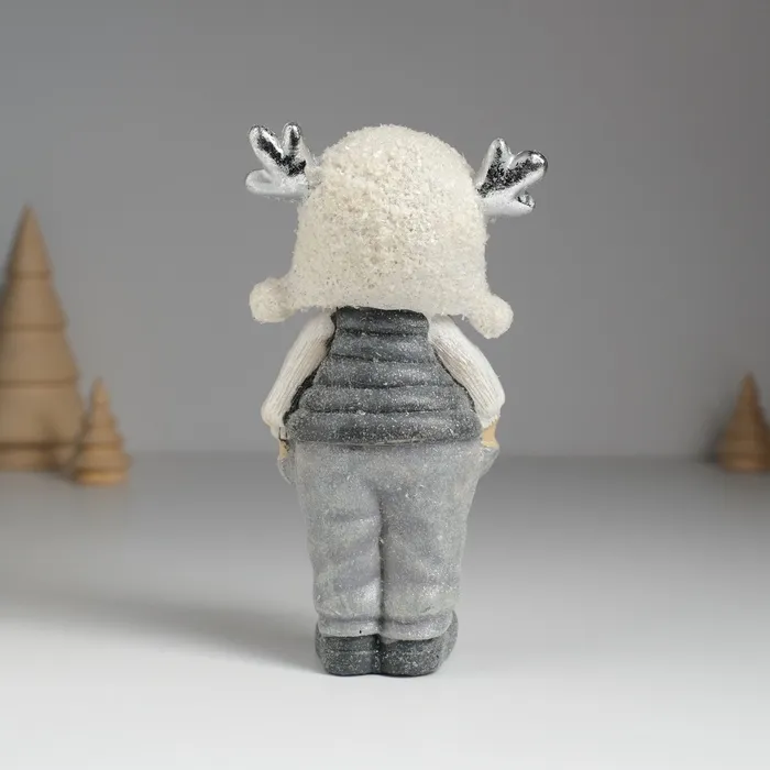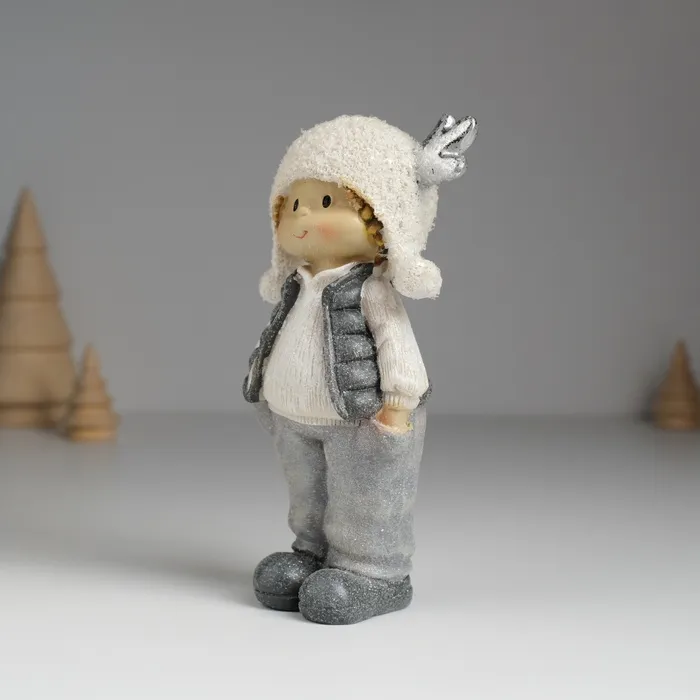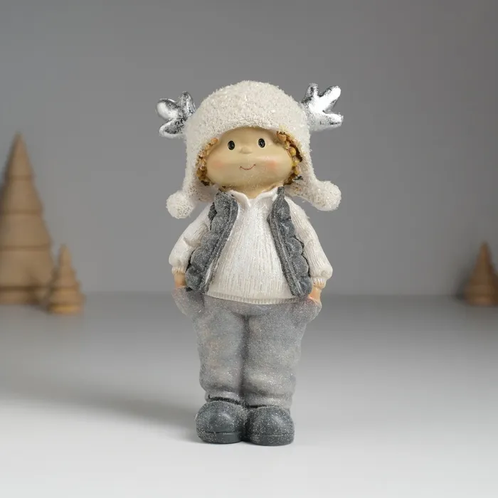 Фигурка полистоун «Малыш. Малышка в мохнатой шапке с оленьими рожками», 7×4×14 см, МИКС — Характеристики