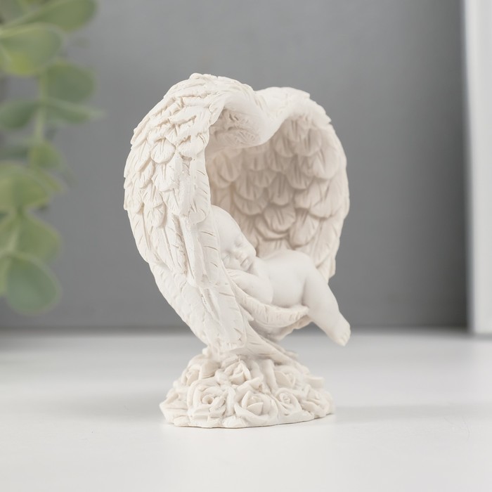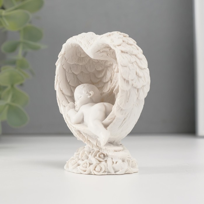 Фигурка полистоун «Малыш спящий в сердце из крыльев», белый, 7.8×6.8×4 см — Характеристики