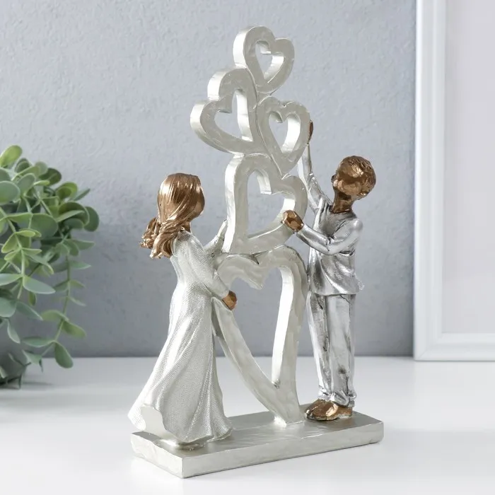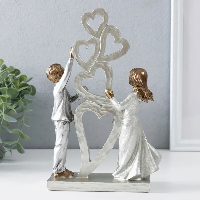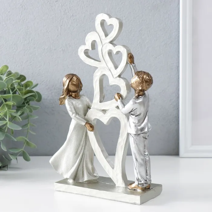 Фигурка полистоун «Малыши и инсталляция с сердцами», бронза, серебро, 15.5×6×23 см — Характеристики