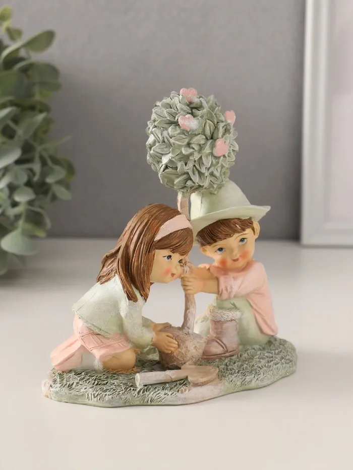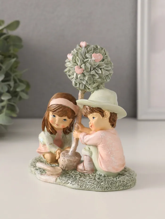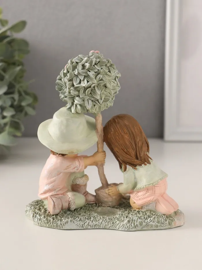 Фигурка полистоун «Малыши сажают деревце», розово-зелёный, 13×7×13 см — Характеристики