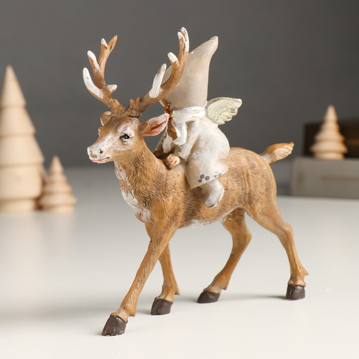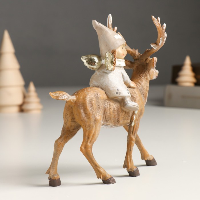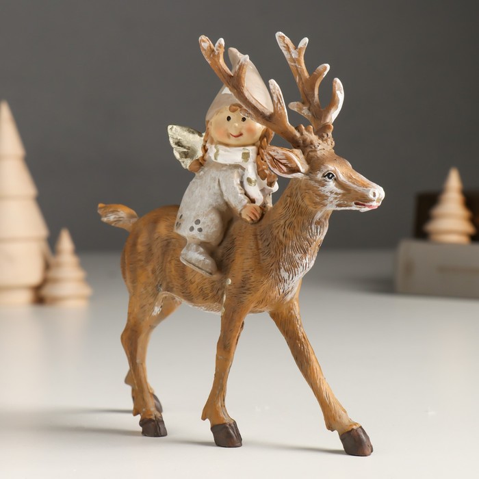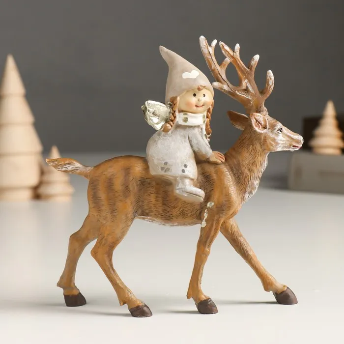 Фигурка полистоун «Малышка-ангел в сером наряде, верхом на олене», 5.5×14×14.5 см — Характеристики