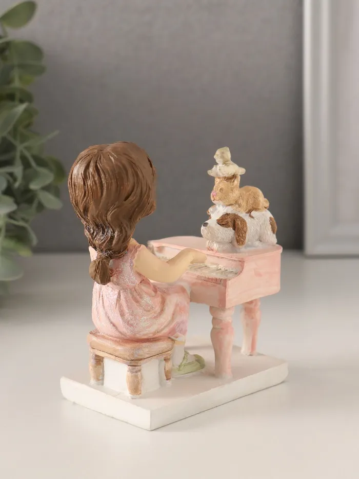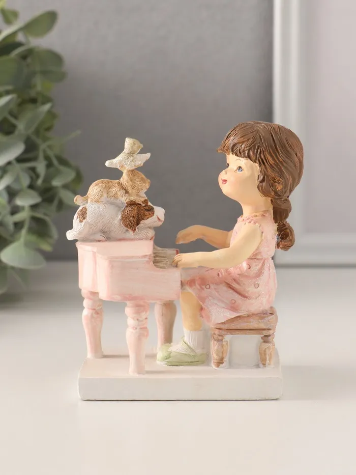 Фигурка полистоун «Малышка играет на фортепиано, зверята слушают», 9.5×5.5×10 см — Характеристики