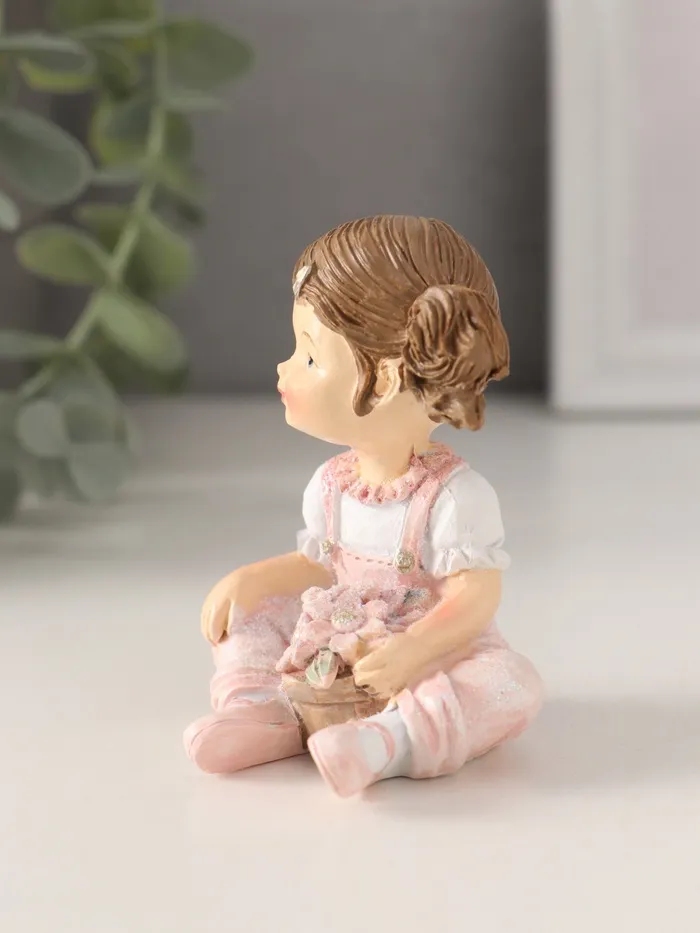 Фигурка полистоун «Малышка с хвостиками, с цветами в горшочке», розовый, 6×5.5×7.5 см — Характеристики