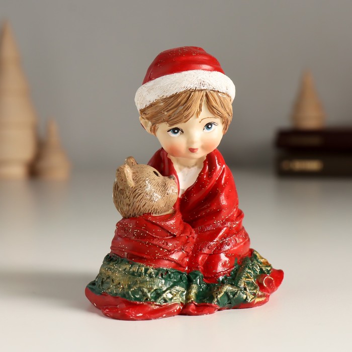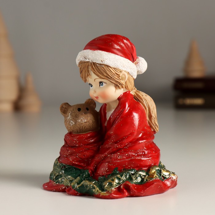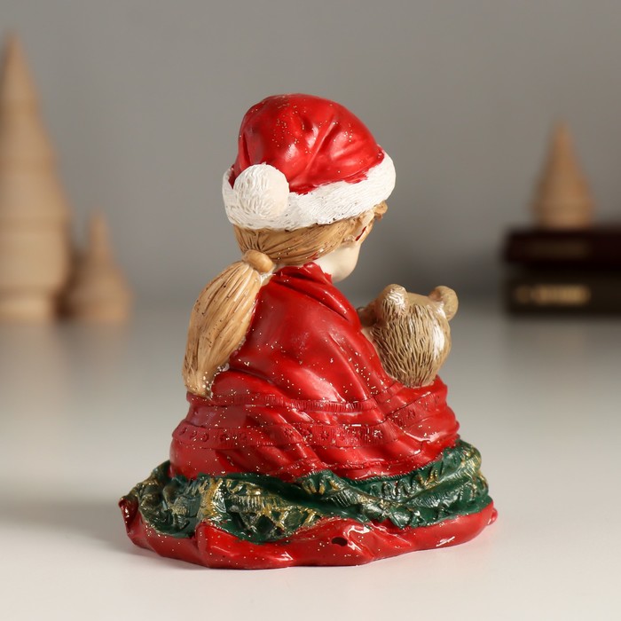 Фигурка полистоун «Малышка в красном пледе с медвежонком», 7.5×6×8.5 см