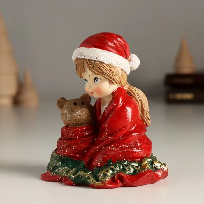 Фигурка полистоун «Малышка в красном пледе с медвежонком», 7.5×6×8.5 см — Характеристики