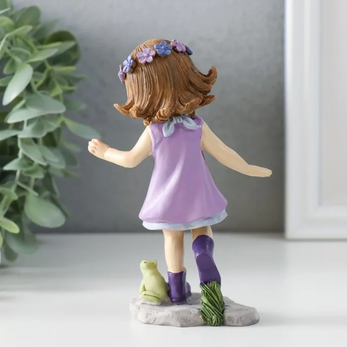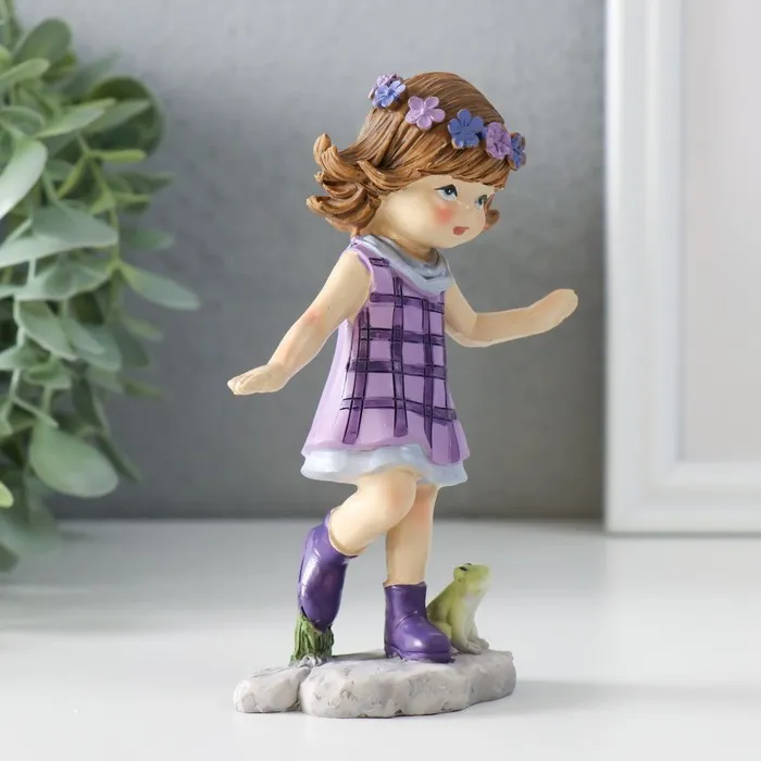 Фигурка полистоун «Малышка в сиреневом платье в клетку, играет с лягушками», 7.5×4×12.5 см — Характеристики