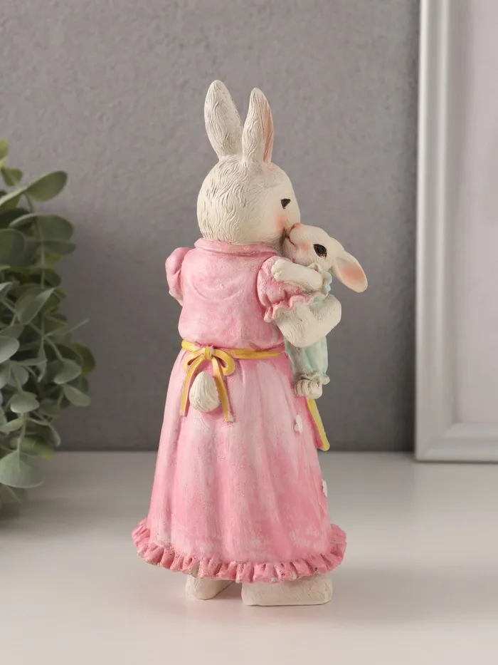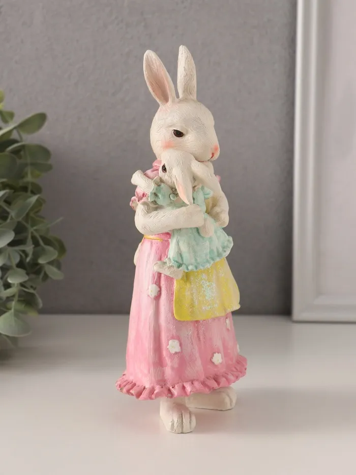 Позвольте себе насладиться трогательной гармонией семейных ценностей с этой изысканной фигуркой, которая станет украшением вашего интерьера или сердечным подарком для близких. Композиция из мамы-крольчихи и её дочки в нарядных платьях передаёт теплоту материнской любви и нежность семейных уз.