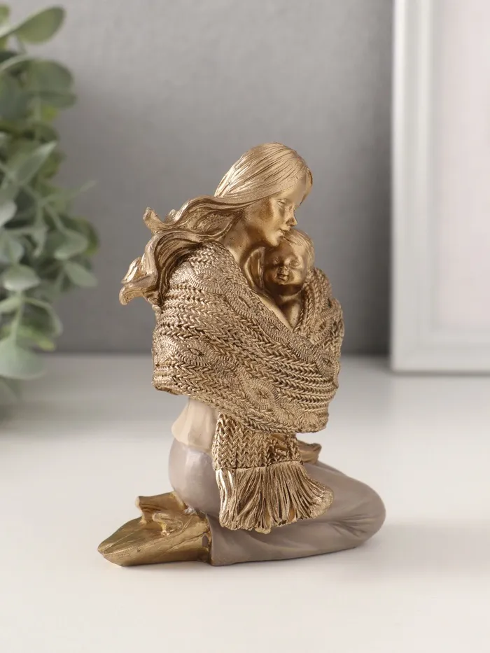 Статуэтка «Мама с малышом в шарфе» станет трогательным акцентом в вашем интерьере или идеальным подарком для близких. Высотой 12 см, эта композиция привлекает внимание своей теплотой и детализированной проработкой. Золотистые оттенки добавляют изделию мягкости и делают его универсальным решением для любого пространства.