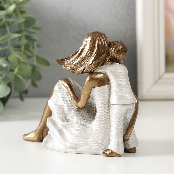 Эта скульптура матери и сына запечатлела момент безмятежной близости. Композиция в тёплых золотистых тонах с акцентами белого и серого передаёт чувство уюта и защищённости, делая фигуру универсальным символом семейной любви.