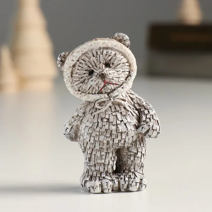Фигурка полистоун «Мишка в шапке; колпаке, стоит», серый, 4×3×7 см, МИКС — Характеристики