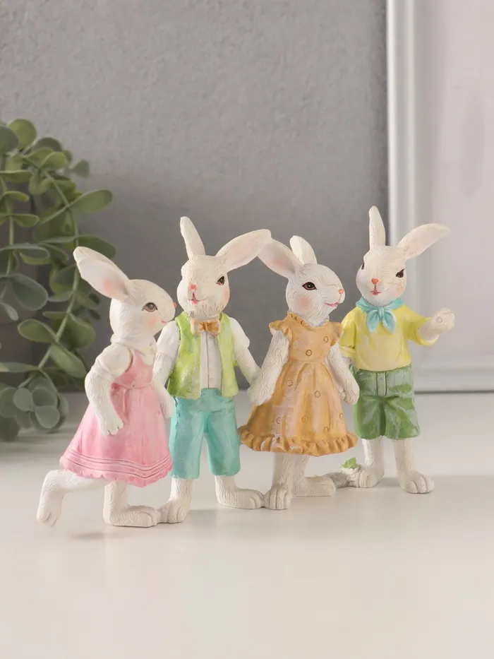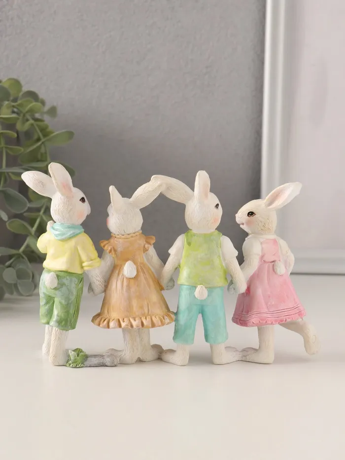 Окунитесь в мир праздника и веселья с этой уникальной фигуркой, которая станет настоящим украшением вашего дома или идеальным подарком для близких. Композиция из нарядных кроликов, собравшихся в праздничный хоровод, передаёт атмосферу радости и волшебства, напоминая о самых светлых моментах жизни.