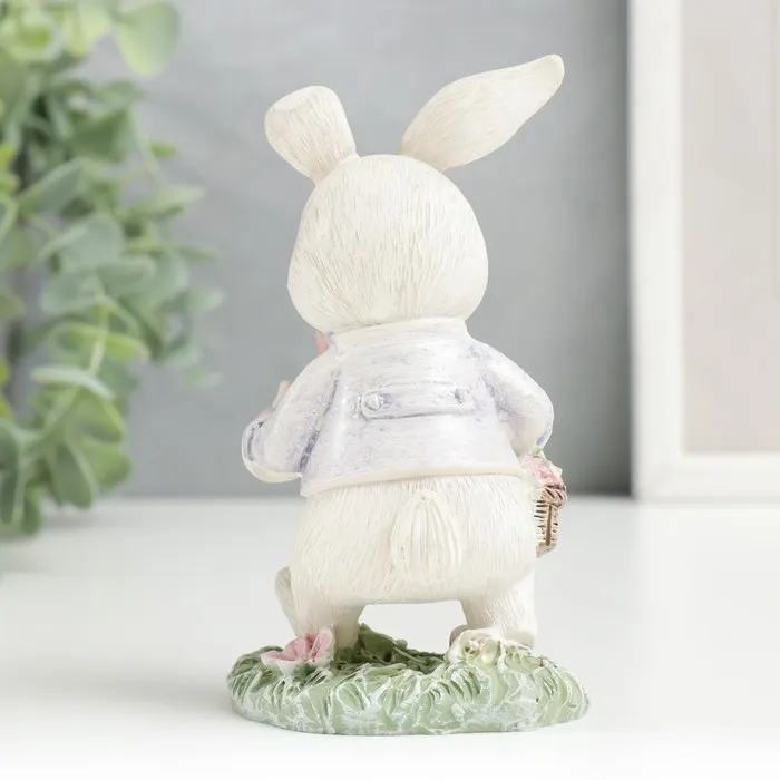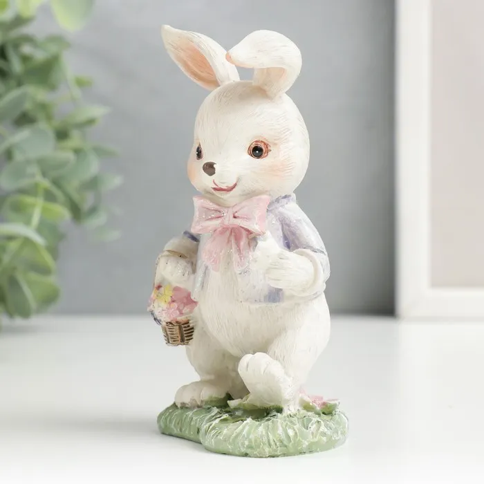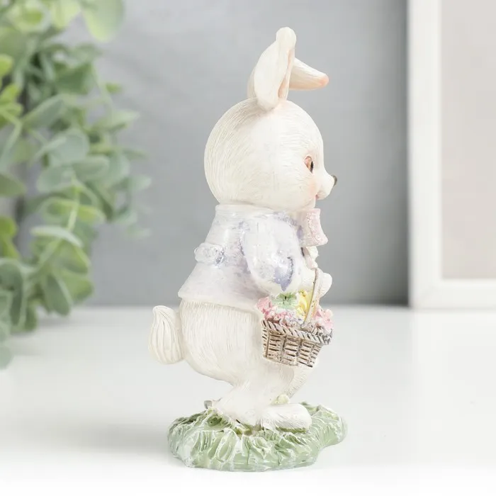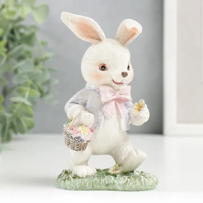 Фигурка полистоун «Нарядный зайчик с корзиной цветов на полянке», 11.5×5.5×7 см — Характеристики