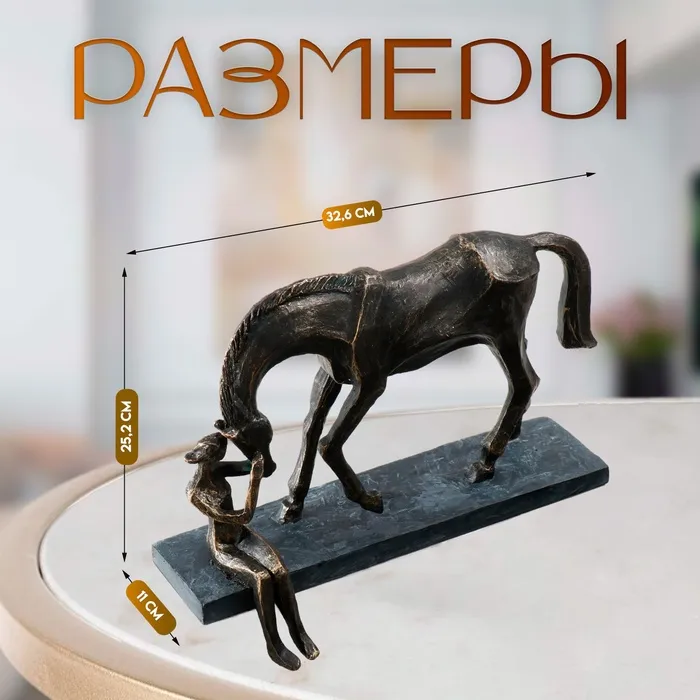 Фигурка полистоун настольная »Девушка с конём» под металл, 32,6х11х25,2 см — Характеристики