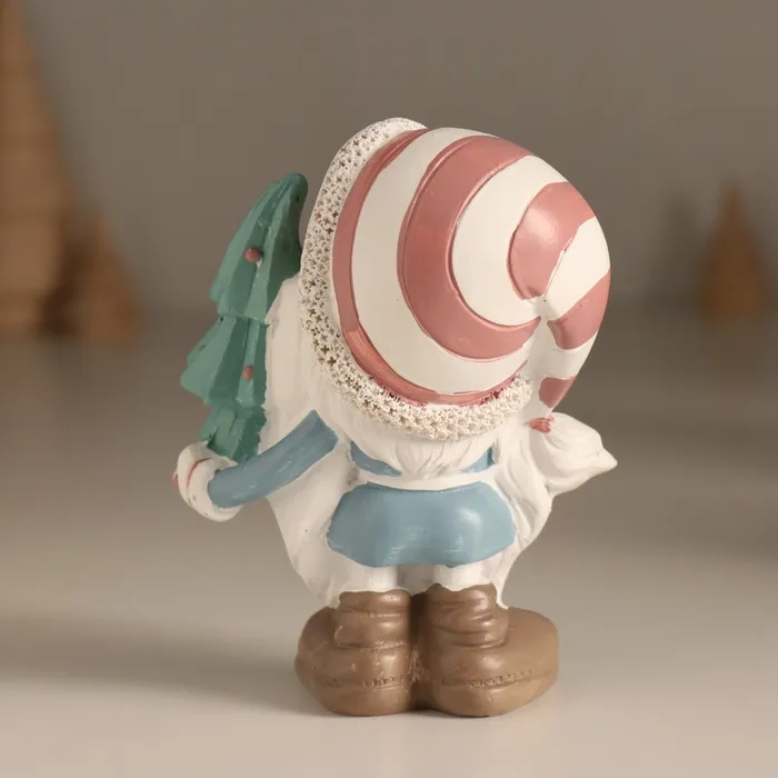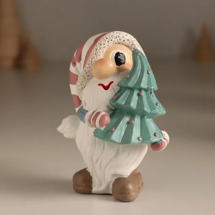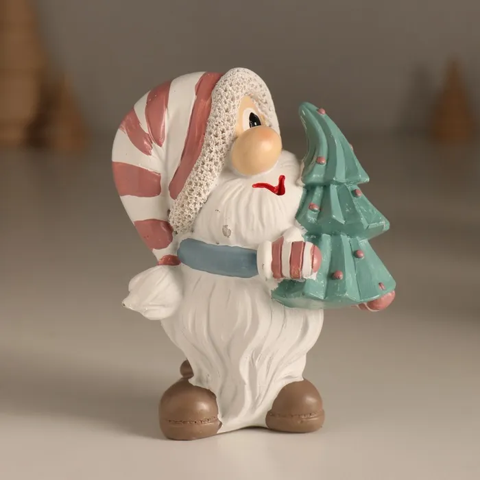 Фигурка полистоун «Новогодний гном с ёлкой, в колпаке съехавшем на один глаз», 8×6×10.5 см — Характеристики