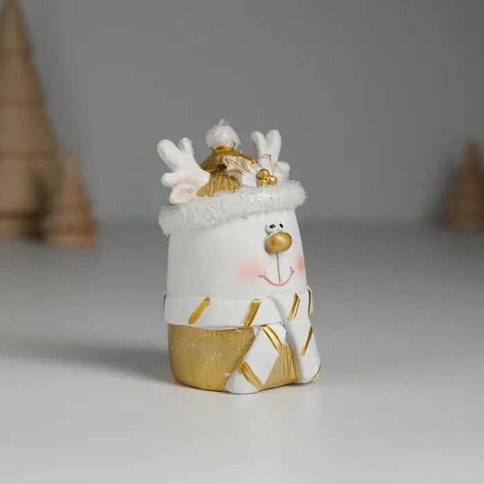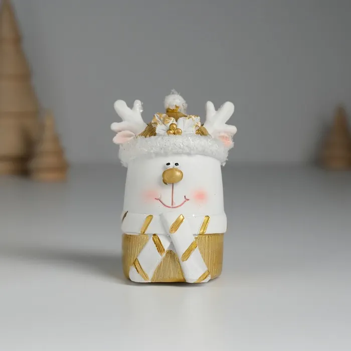 Фигурка полистоун «Олень белый в шапке и шарфике», 4×4×7 см — Характеристики
