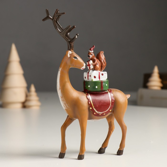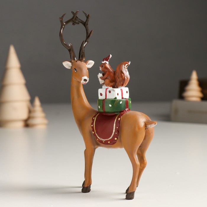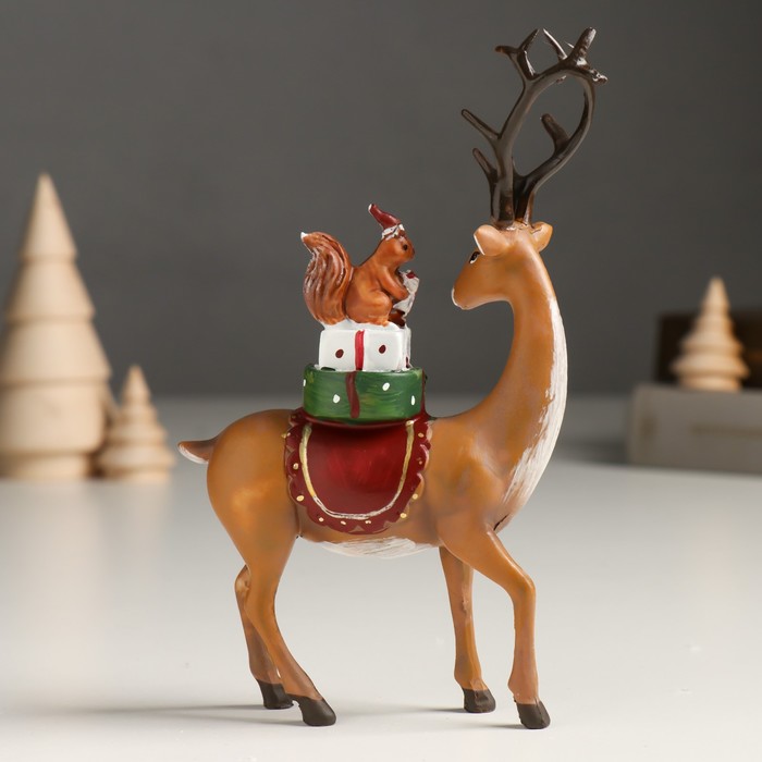 Фигурка полистоун «Олень с подарками на спине и белочкой в новогоднем колпаке», 5×11×15.5 см — Характеристики