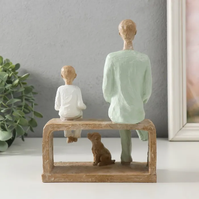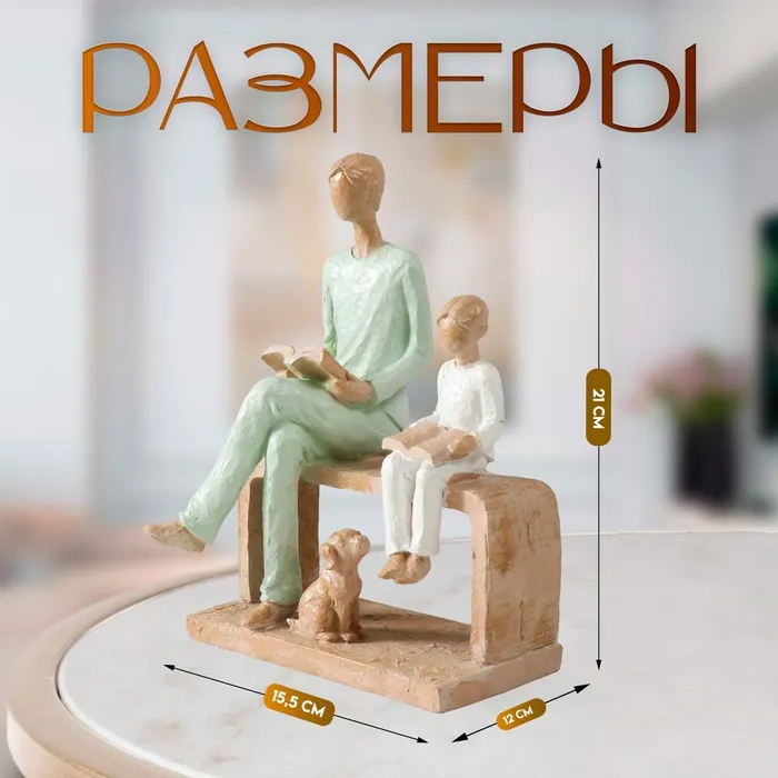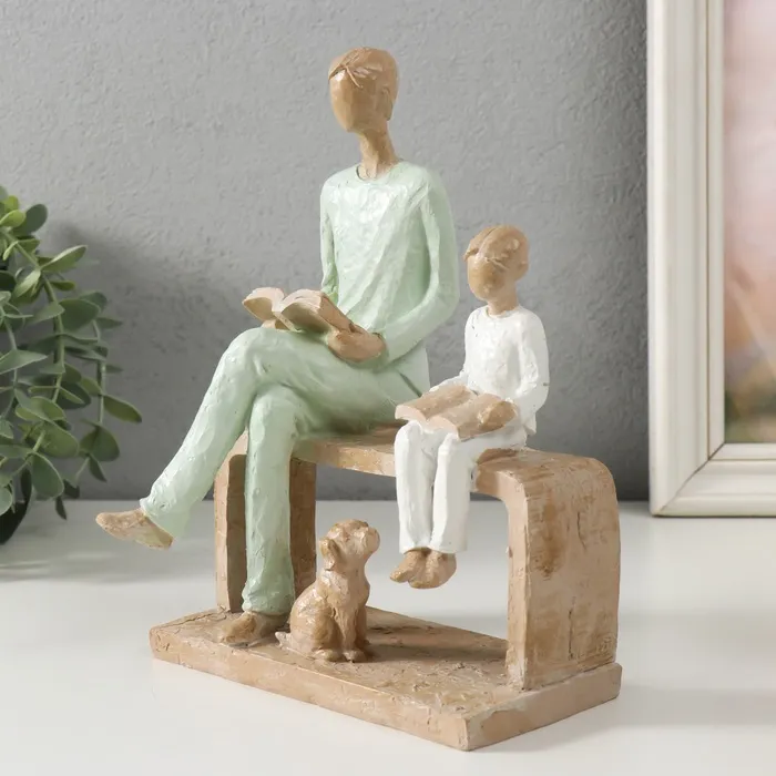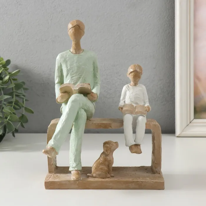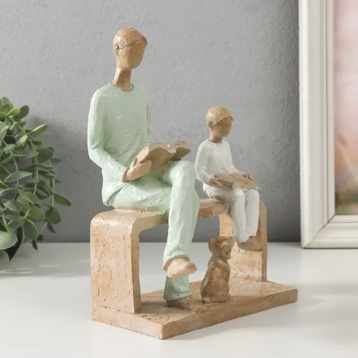 Фигурка полистоун «Отец и сын. Чтение», бело-зелёный, 15.5×12×21 см — Характеристики