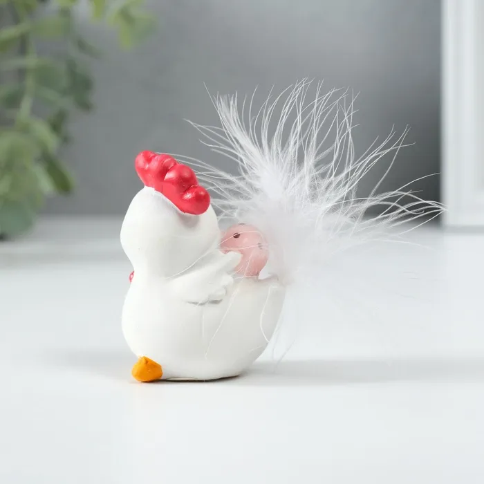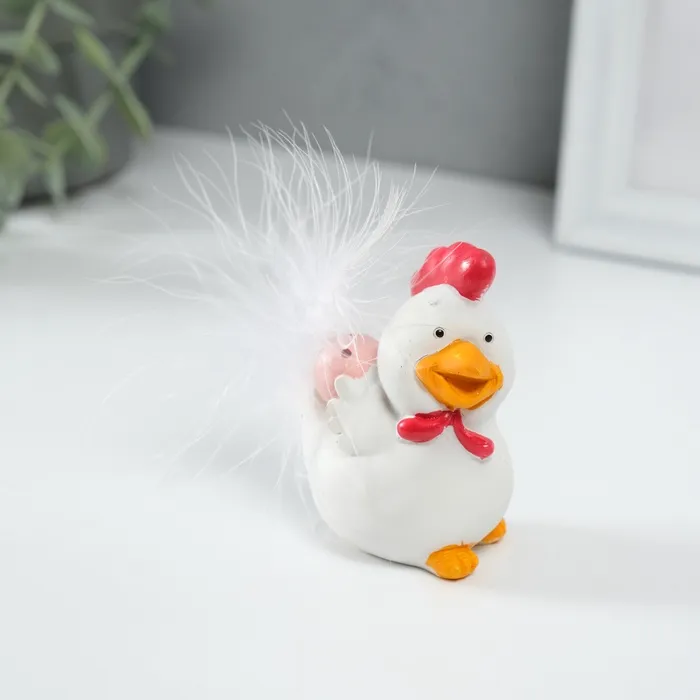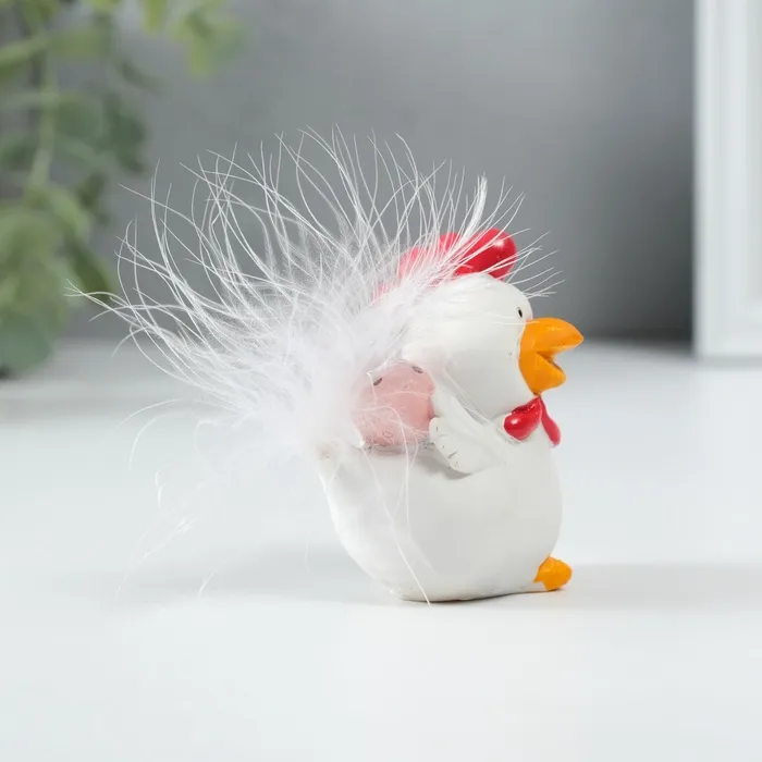 Этот изящный белый петушок с розовым яйцом — очаровательное воплощение весеннего настроения. Миниатюрная фигурка высотой всего 6,5 см станет трогательным акцентом пасхального декора или милым дополнением интерьера в любое время года.